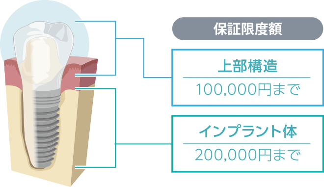 インプラント体や上部構造の脱落・破折などに伴う再治療費を、一定条件のもとで10年間保証する制度です。